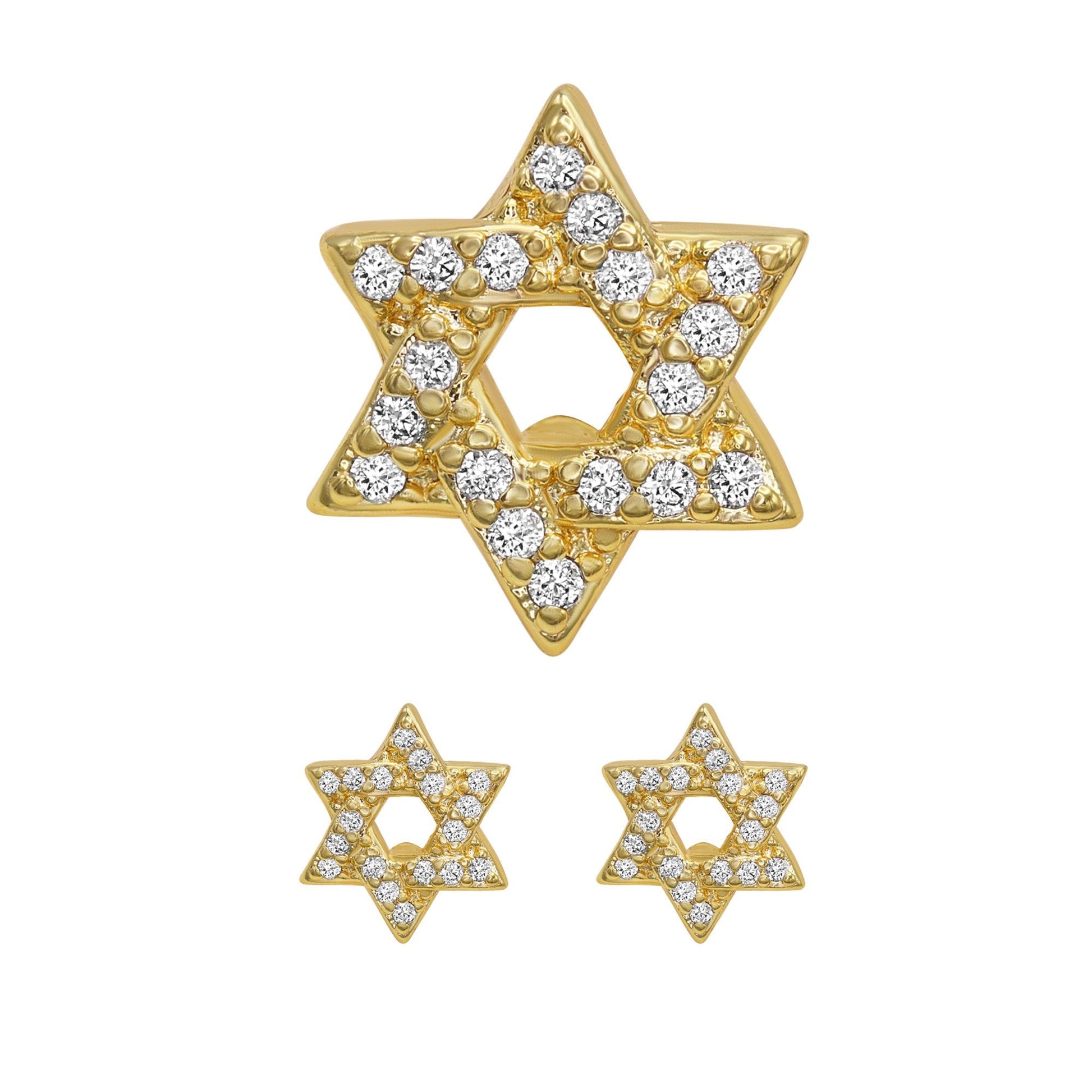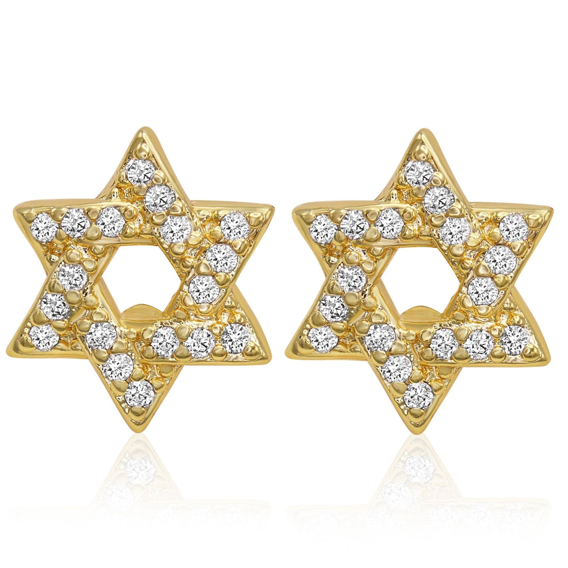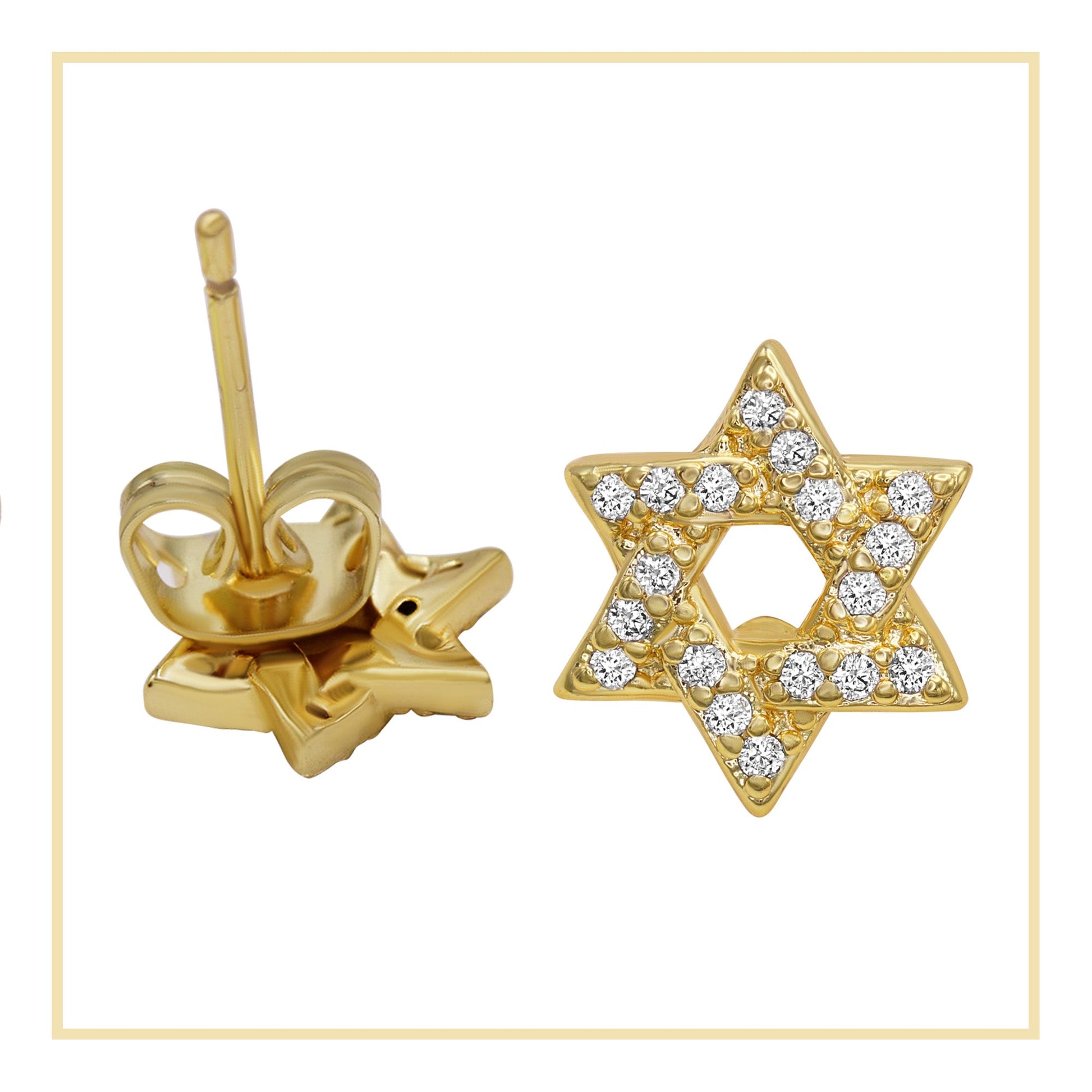 Expertly crafted with 14K gold and sparkling cubic zirconia, these hip hop studs feature a bold and unique Star of David design. Elevate your style with this stunning and meaningful piece of jewelry.