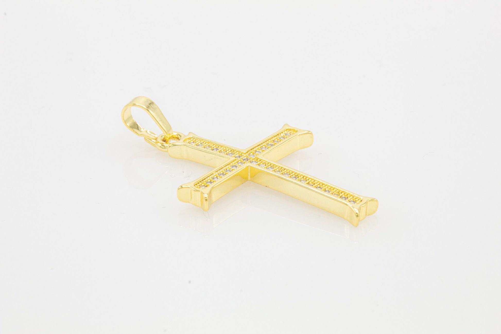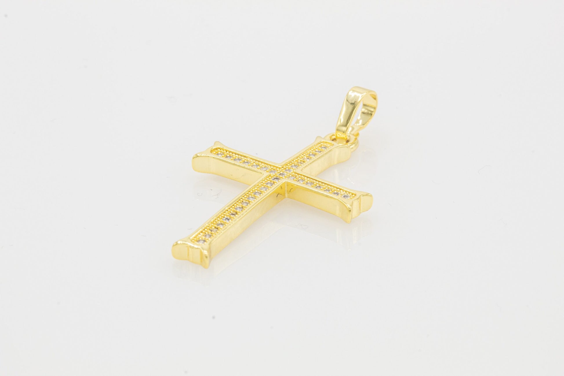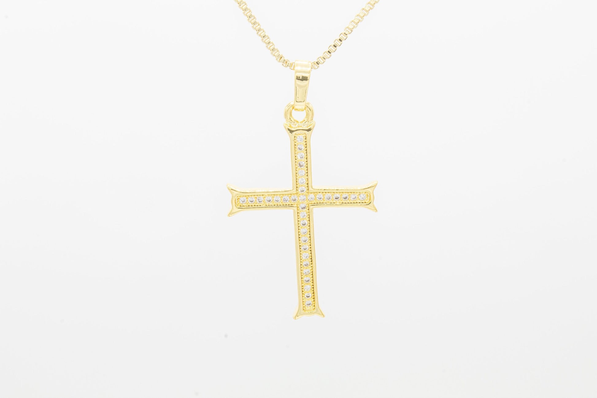 Elevate your style with our Big Stone Cross CZ Pendant Necklace Set. Made with 14K gold filling and 8 sparkling CZ stones, this pendant is a symbol of faith and elegance. Whether worn alone or layered with other pieces, this pendant is sure to make a statement.