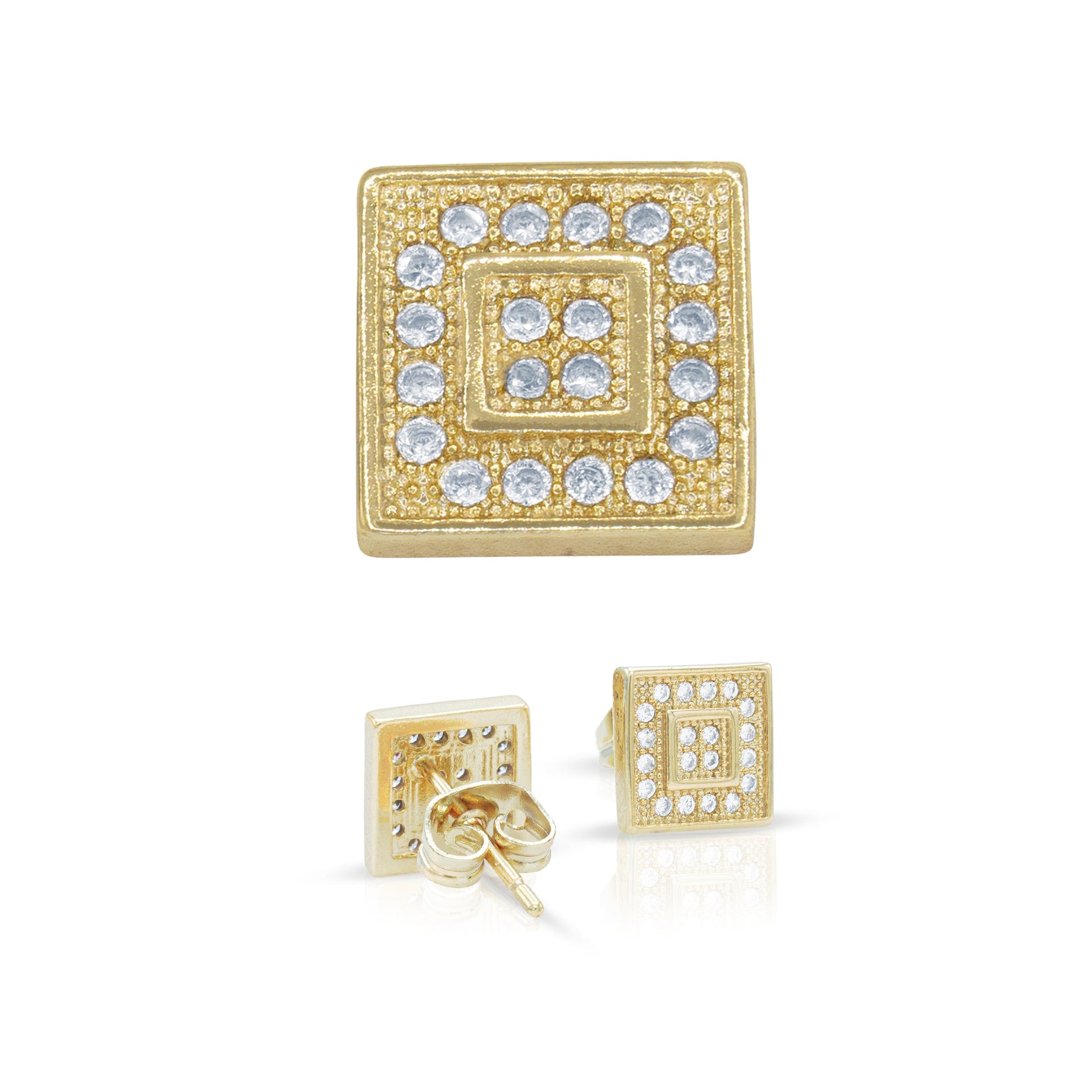 - Hypoallergenic 14K gold plated metal CZ Double Square Stud Earrings