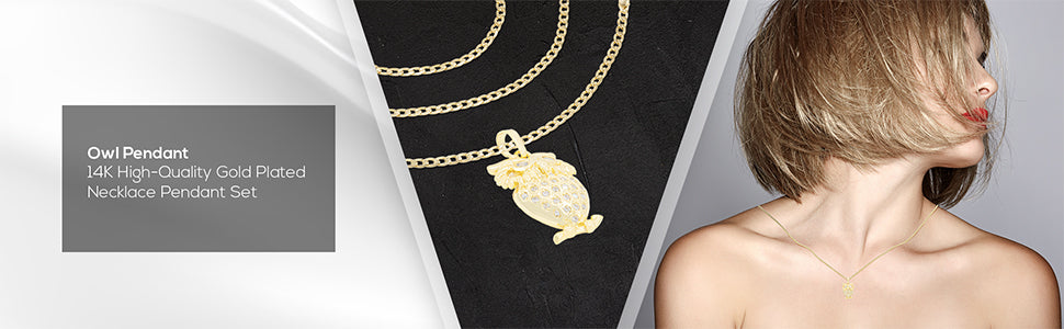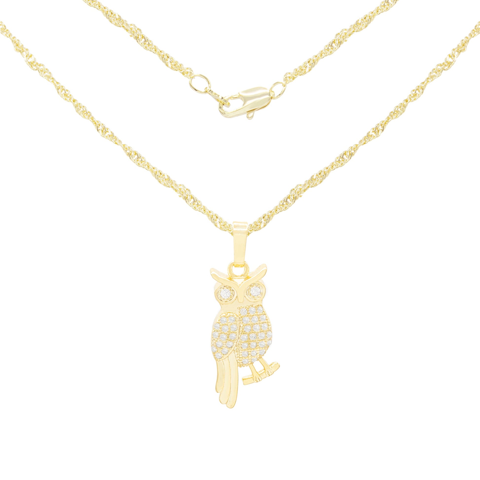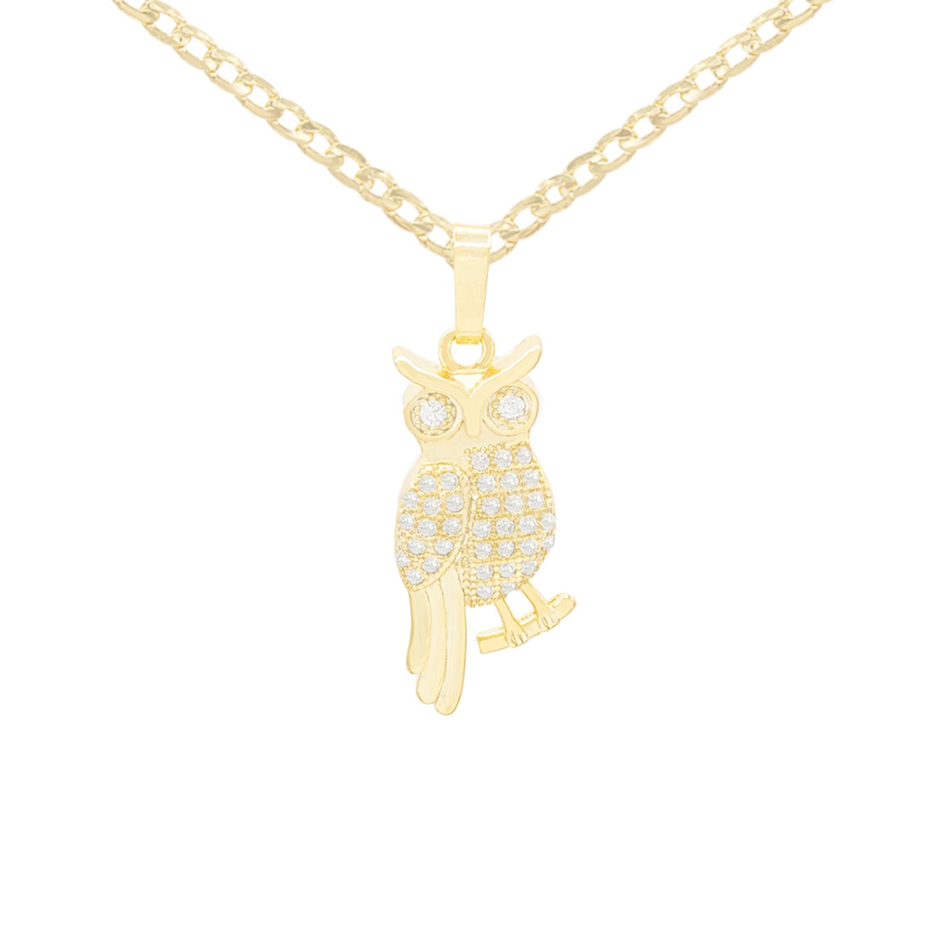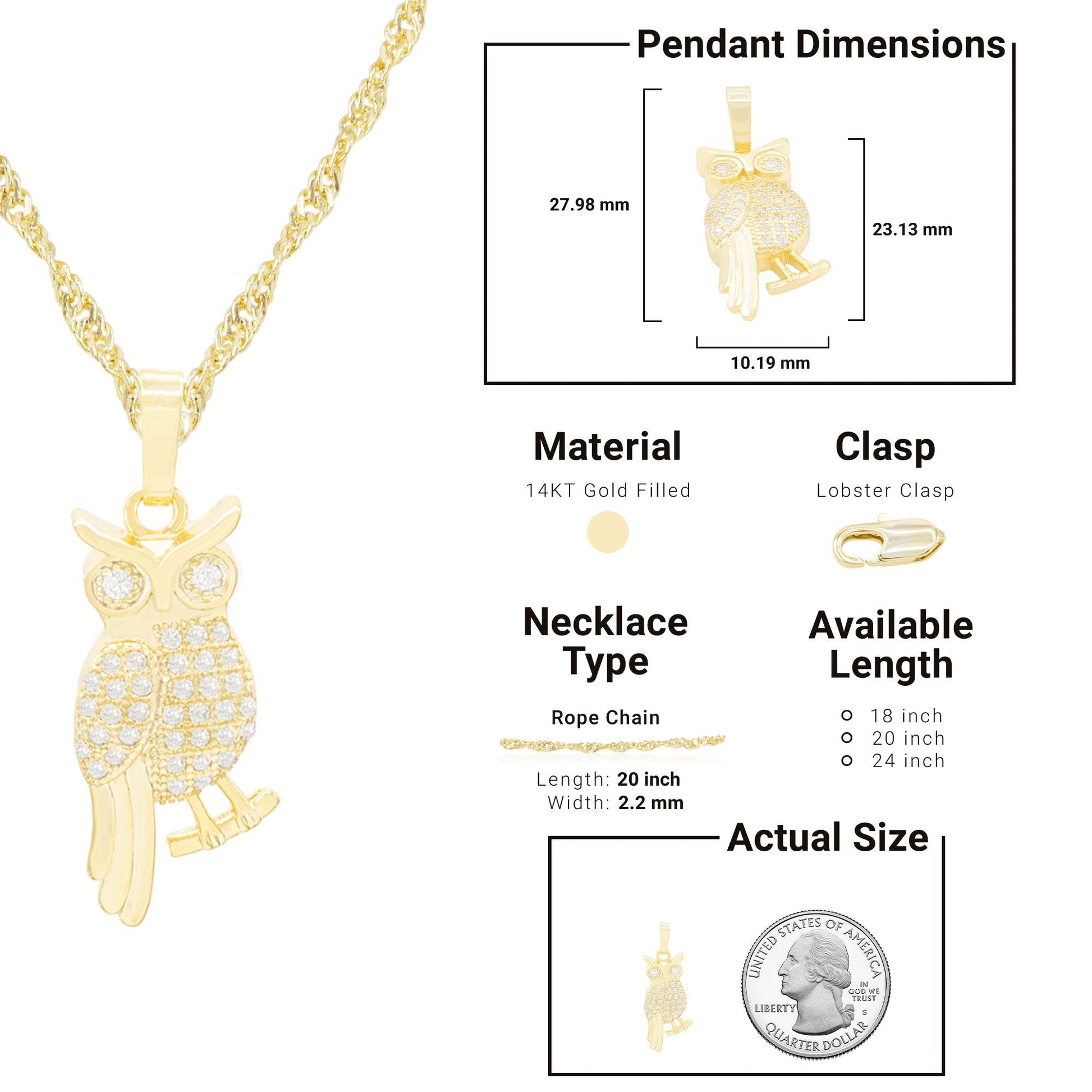 This elegant Owl CZ Pendant 14K Gold Filled Chain Necklace Set features a beautifully detailed owl pendant and a delicate gold chain. Perfect for adding a touch of sophistication and style to any outfit. Made with high-quality materials, this set is a must-have for any fashion-forward individual.