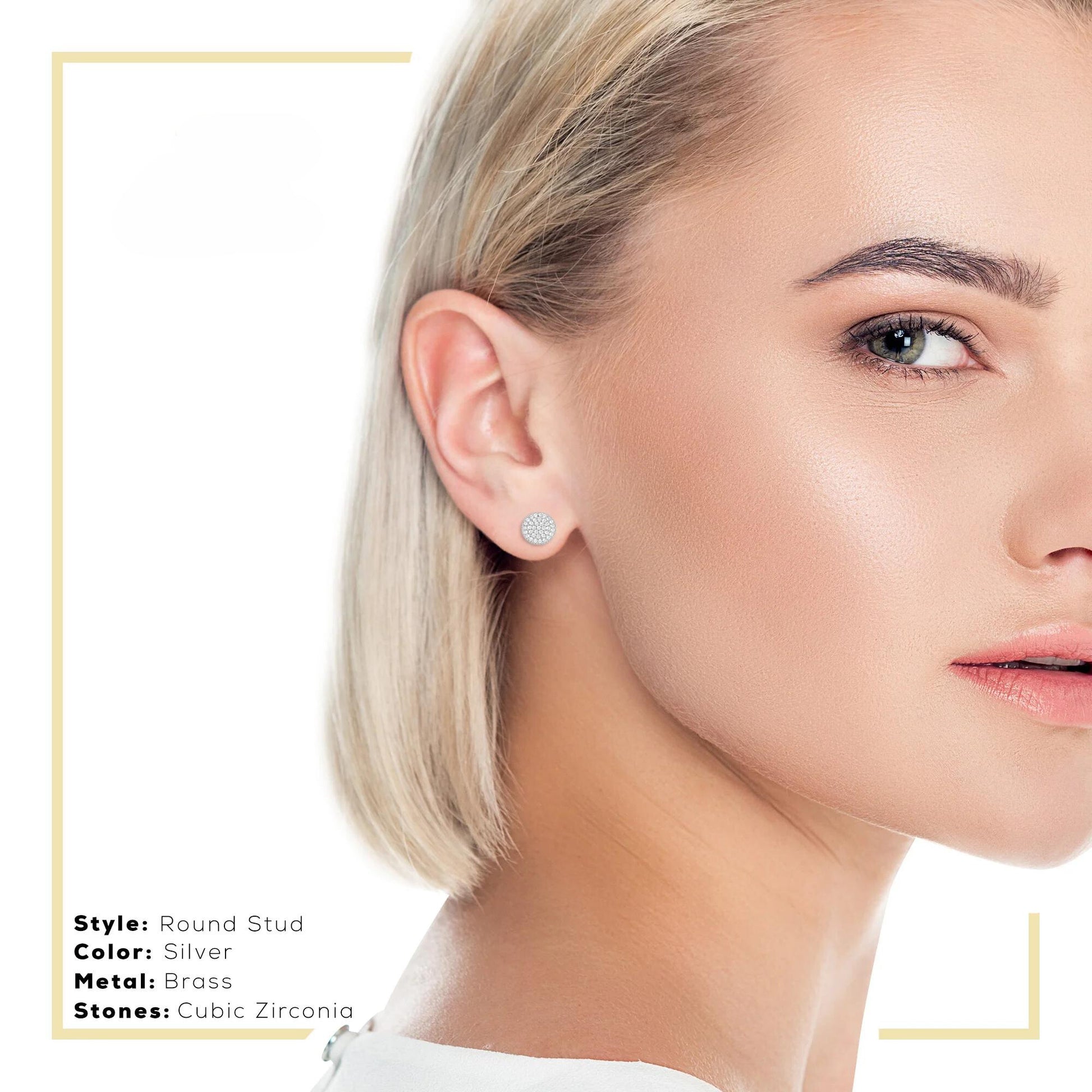 - Hypoallergenic 14K gold plated metal CZ Round Stud Earrings